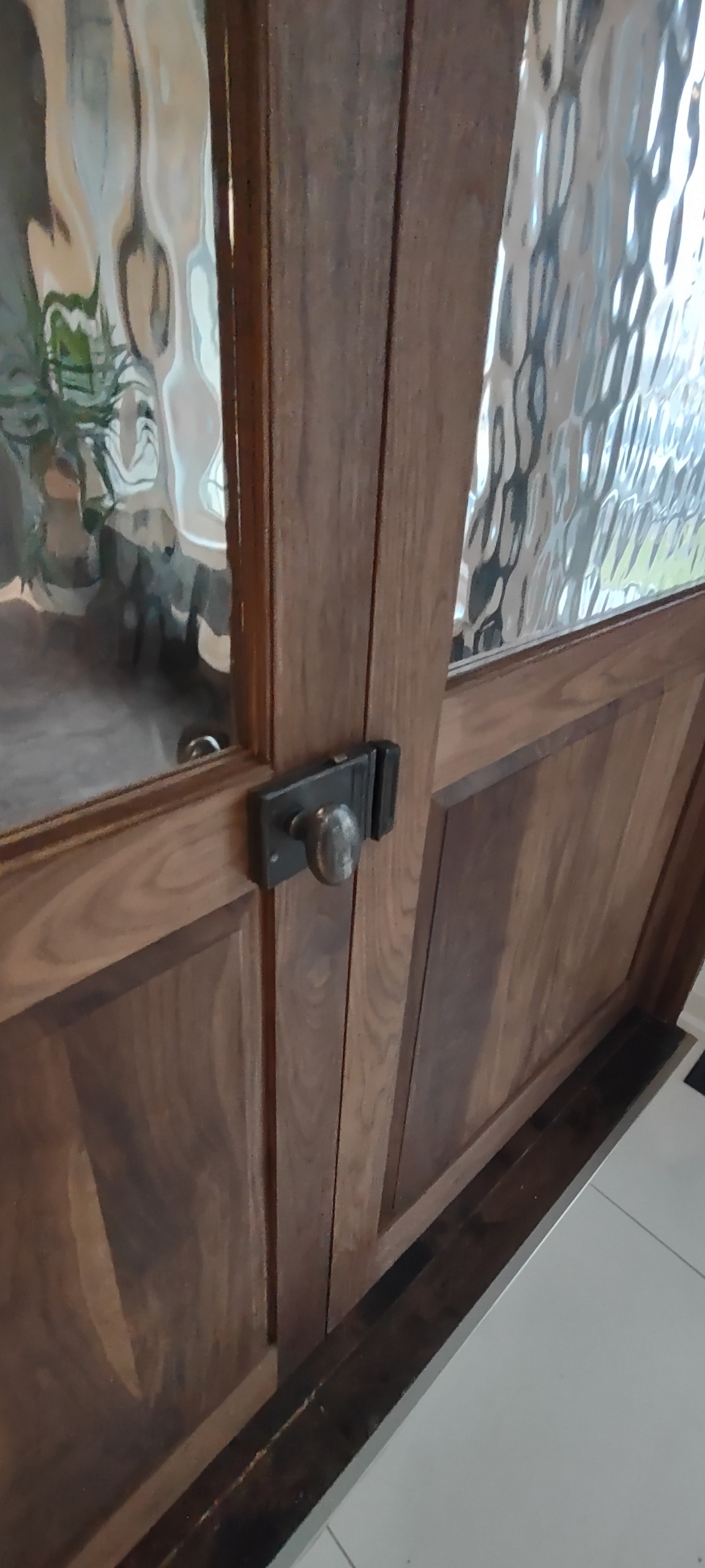 I designed the woodwork based on the clients wishes, the materials selected were black walnut and antique glass and the hardware selected was also to reflect the period.