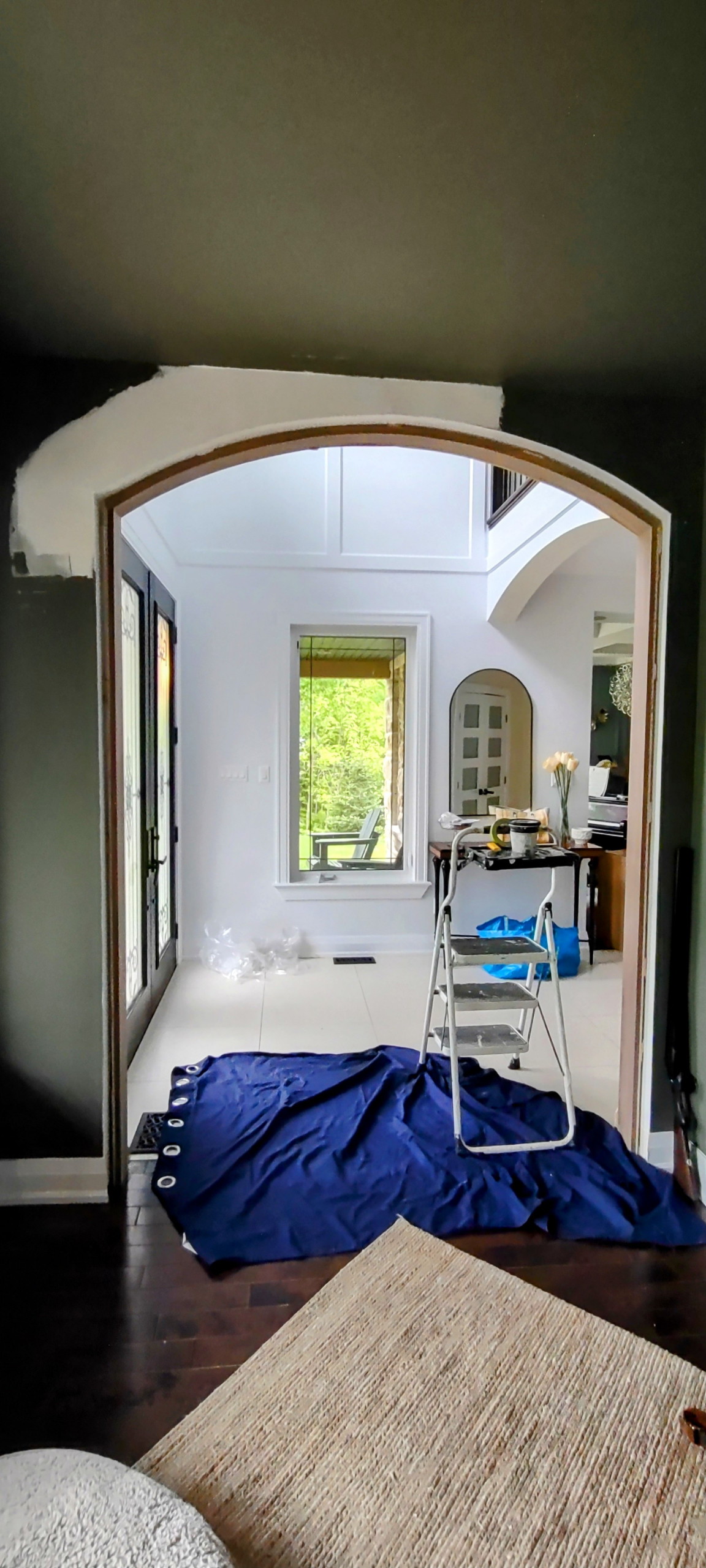 The client had an existing archway and wanted to create a turn of the century look with an arched doorway.